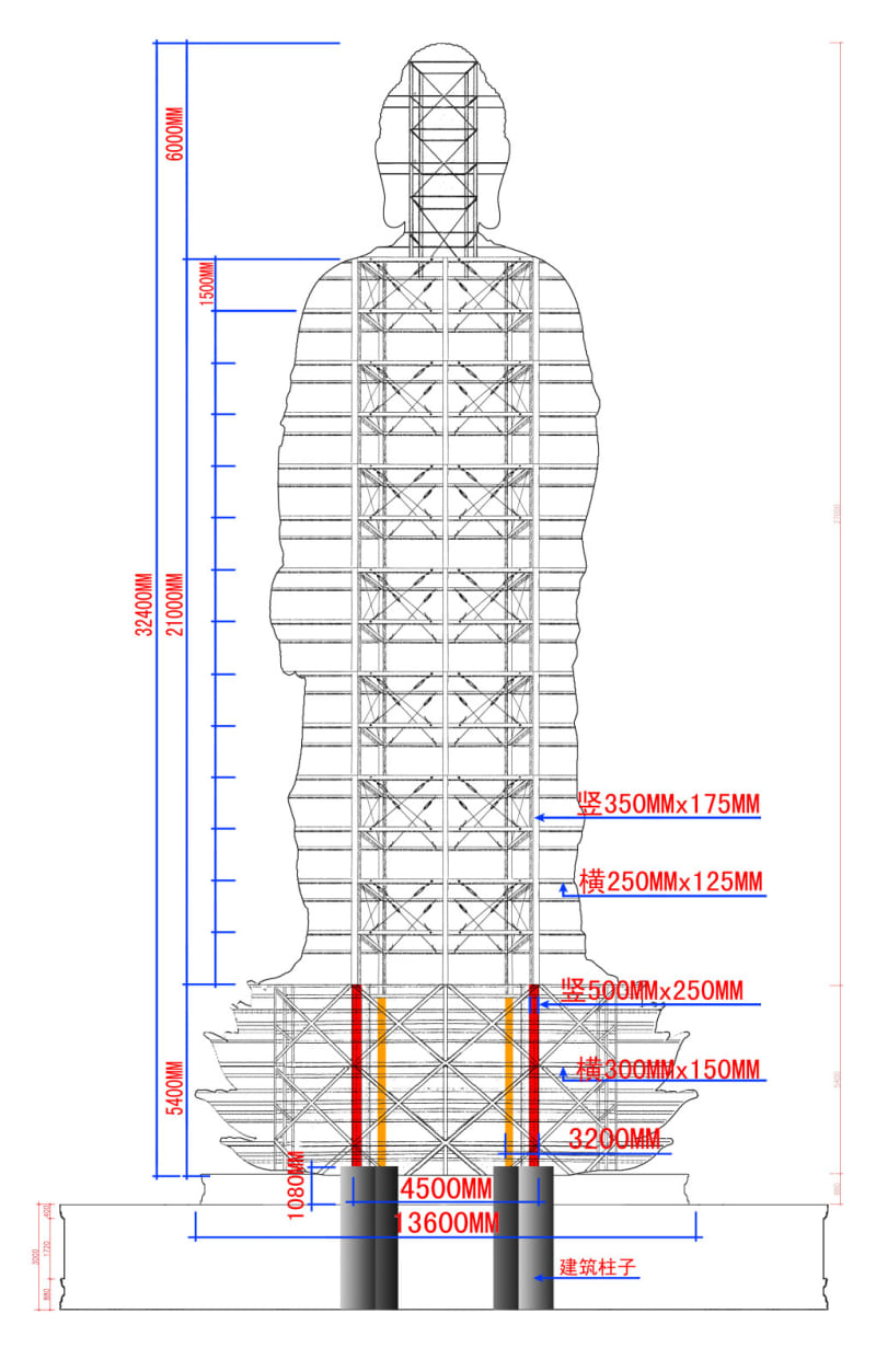 @IR: statue frame sits on shaft made from 300 walls and four 800 x 800 columns in corners. Shaft sits on monster pad footing. Ignore the base in the sketch.
