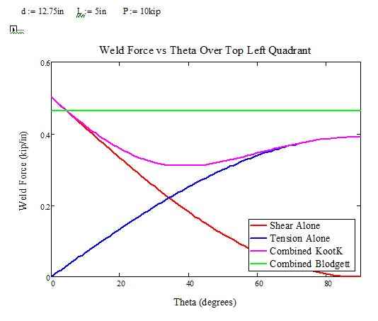 I don't feel that it's prudent to dismiss this discrepancy simply because of the limited computing power available to Blodgett or the fact that "knowing" weldment stresses accurately is hard. My intuition is that Blodgett's design equation does make theoretical sense, just like all of his other recommendations. Rather, I think that we are missing something here regarding the theoretical background to Blodgett's equation. This modern design document corroborates Blodgett's assumption of uniform shear stress (Link). For me, that is sufficient circumstantial evidence to conclude that we are somehow lacking in understanding.