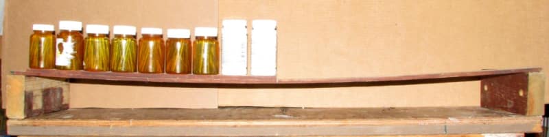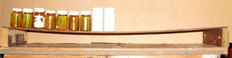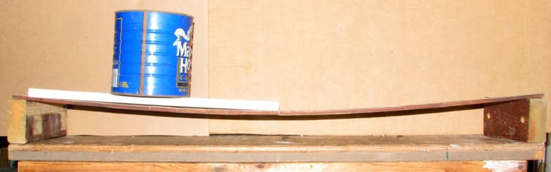 The second is a heavy load (can of nails) and on a stiff 19 1/2" beam: Midspan Deflection 1 19/32"
