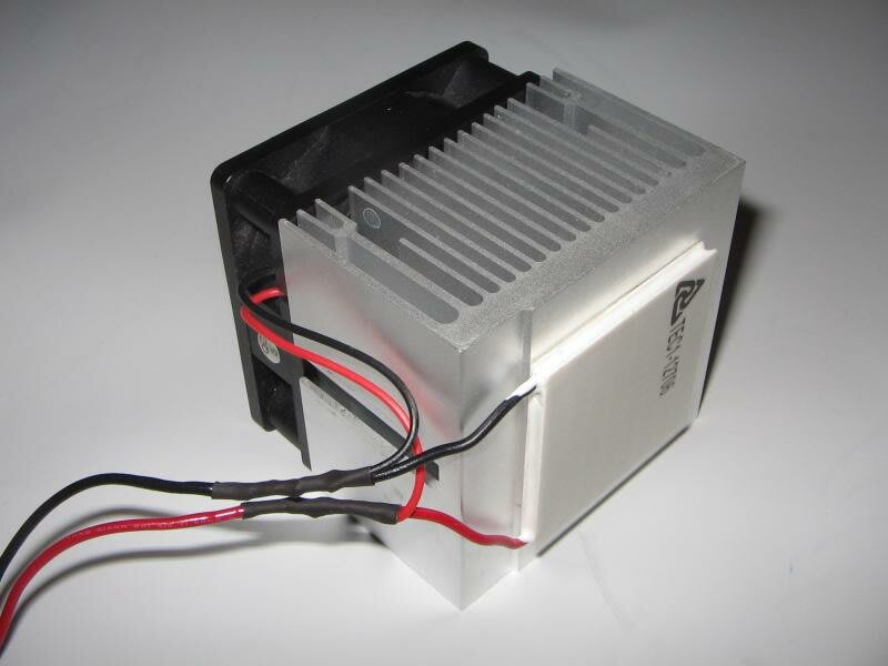 and the thermoelectric cooler with heatsink look like this.