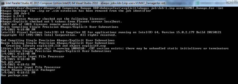 It passes the pre-processor, compiles & links just fine but when it comes to the Explicit Packager it just stalls and the solver never starts, see image below.