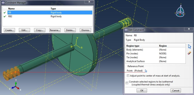 There is 2 Rigid Body constrains in this model and they're Region type is Pin (nodes), like image (3):