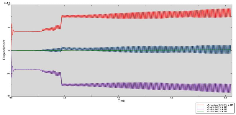 But when using double precision and nodal output precision (Full), model did not get stick on the 8.2 total time.