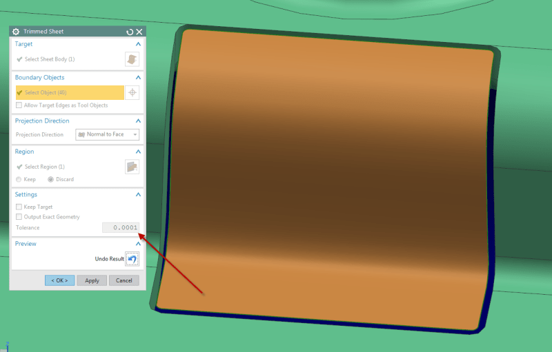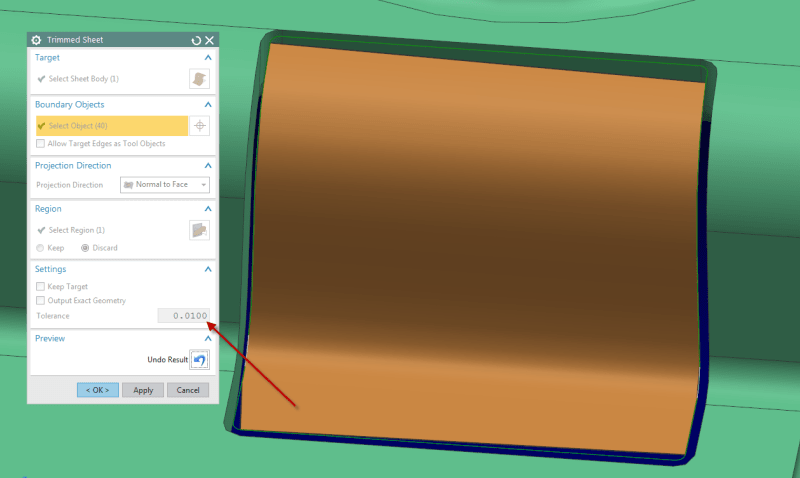 Also note that starting with NX 10.0, we've changed the default out-of-the-box modeling tolerances. For Metric parts this was changed from 0.0254 mm to 0.01 mm, and for Imperial parts, from 0.001 inches to 0.0004 inches. I went back to your original model and without making any changes whatsoever except for using the new default modeling tolerance of 0.0004 inches the trimming operation worked fine.