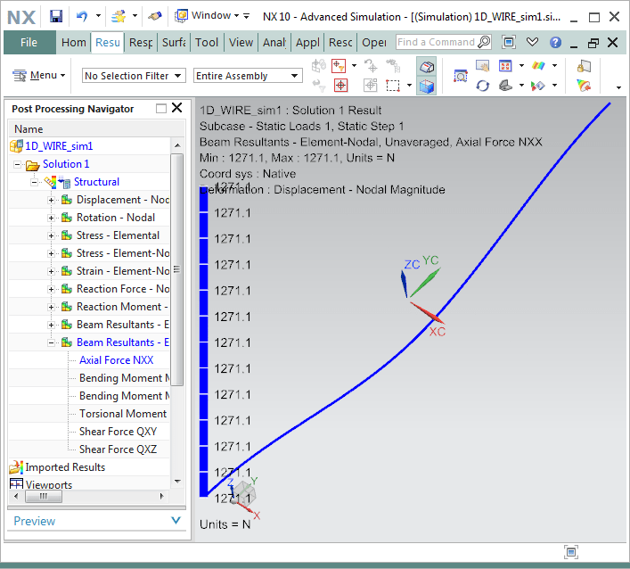 please find attached a simplified 1D model. I have tried applying a negative temperature load or an axial load of 1275N which is equivalent to the required pre-tension value but I always get around 19.6 mm of deflection. Any advice?