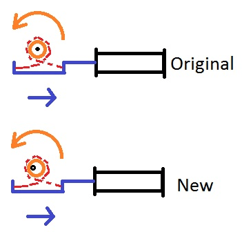 My thought is that if I offset the shaft and turn the sprocket into a sort of cam, I can increase low end torque and high end velocity, but I have no idea how to calculate this as the chain is completely wrapped around the sprocket it isn't clear where I should be calculating force from, i'm assuming that I should be calculating mechanical advantage against the part of the sprocket closest to the side that is being "pulled" from the chain, so in the image example the shaft in the new design would be giving the desired behavior.