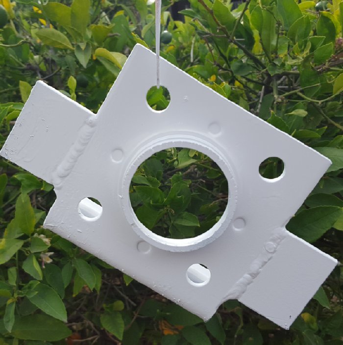 So I paint it. I take a piece of TIG rod and thread it thru to hold the work piece. I spray it nice and white.: