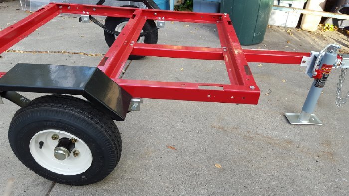 So here is the assembled smallest Harbor Freight trailer. It went together very well, was easy to square up. Took a leisurely two hours with no help. Weighs about 120#
