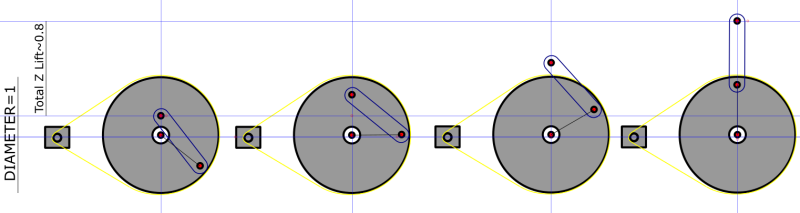 @dvd: I can't have neither the crank nor the rod too long due to size constrains (the lifting platform will end up having a too high lowest point) yet I want to maximize stroke.