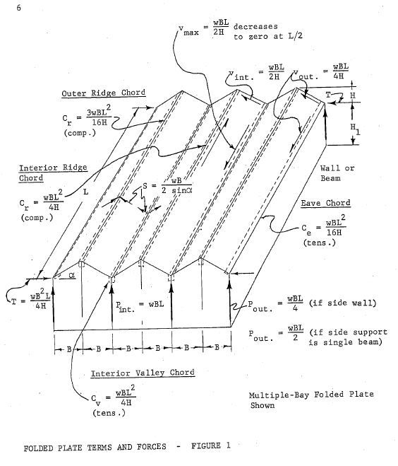On the other hand, if what you mean is to actually account for diaphragm action in design then I very much disagree. The design would be anything but simple and efficient. I could design and detail the ridge beam system in an hour. Without the aid of a killer spreadsheet, the folded plate business might take me a day or two. And a good deal more drafting and field review time as well.