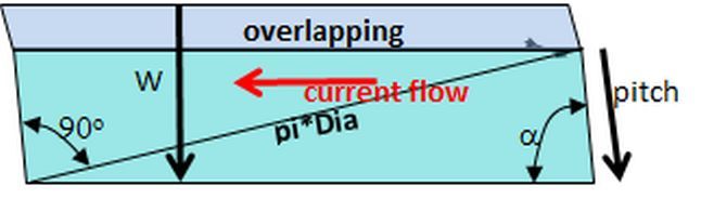 R=4*(1-k/100)/t/pi/DIA*ro [ohm/m]