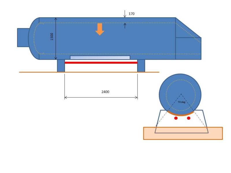 The vessel is fully welded to the support saddle. I reckon welding two 3" sched 80 pipe with weld size of 10 (pipe to support) as stiffener should be sufficient. There is nothing I can use to support on top. The support bases are set in concrete.