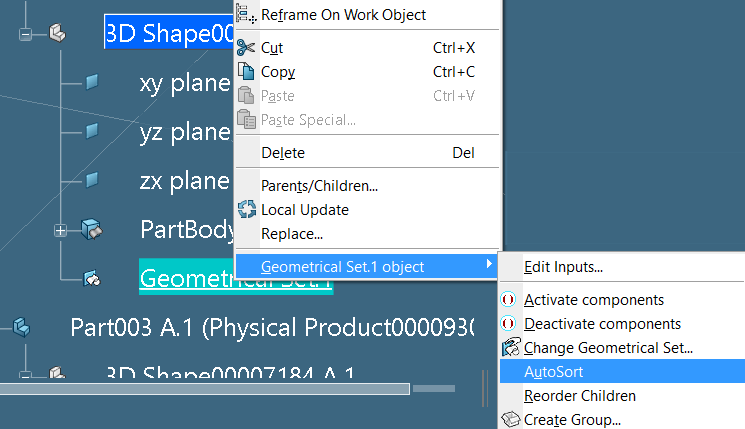 How could I get a chronological order in my CATPart's geo.set?