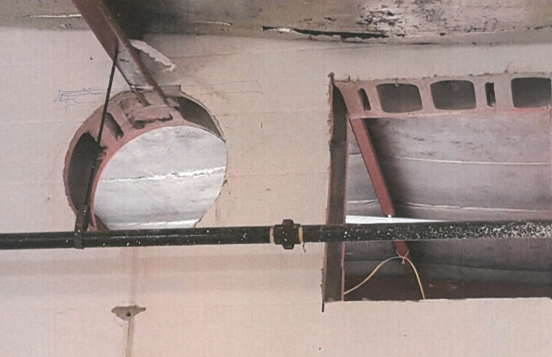 I haven't spoken to the site foreman yet, but, my current thought is to fill the (round) hole with CMU and cut a new hole to the left. Hopefully there will be a dropped ceiling to cover this up!
