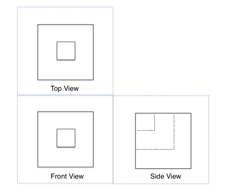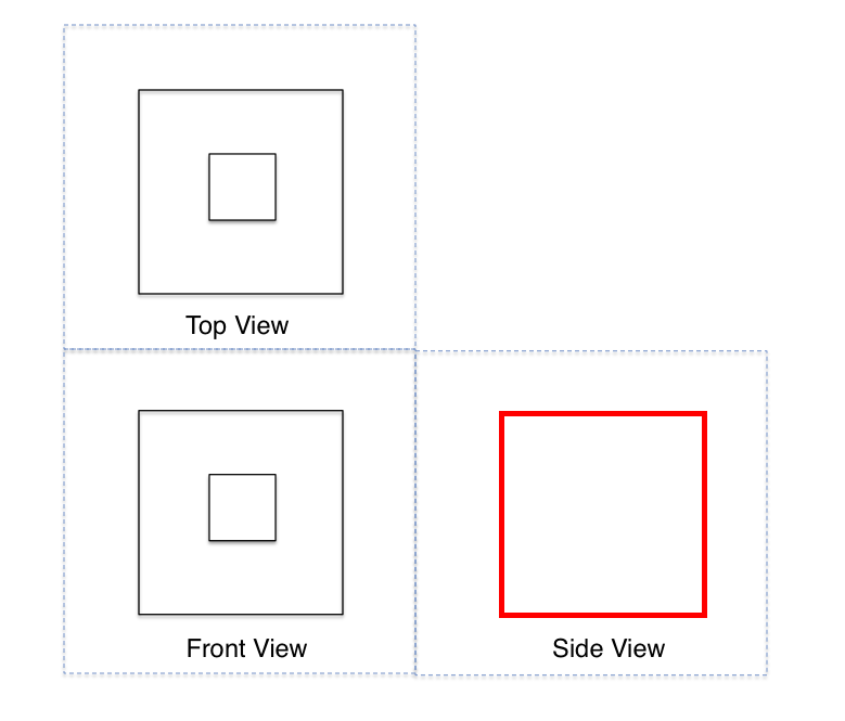 Given Two views of a physical object, Top and Front, please provide the missing Side view. Note that all the edges of the object have been fully and properly rendered in the Drawing below: