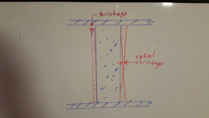 4. Your drawing depicting radial shrinkage is not correct in that radial shrinkage will cause the concrete surrounding the column to pull tighter to the column.