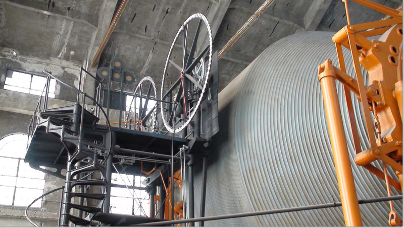 Inside the Nordberg Hoist House. Takes a huge hoist drum to go down that many levels