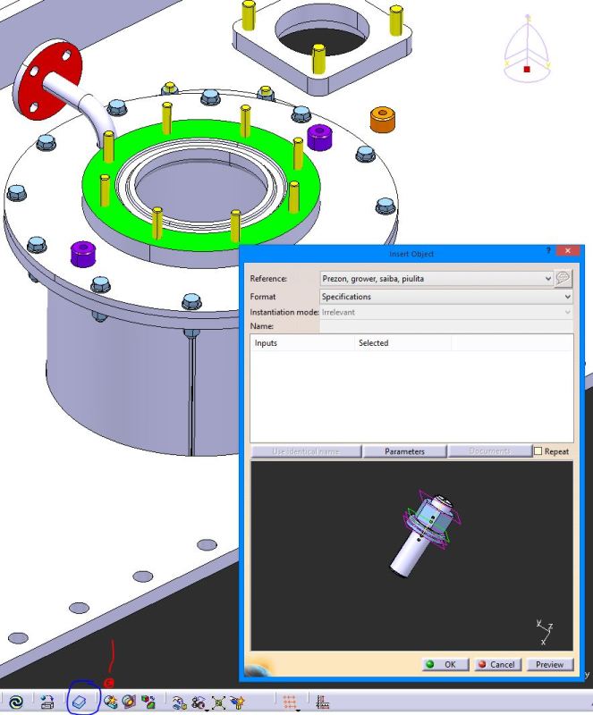 I need to define some inputs for a product template, mainly the axis and the plane on which the instantiated product will be constrained.I will instantiate this product (flange with bolts, nuts and spring washers) in another big assembly that contains some sheet metal and other parts.