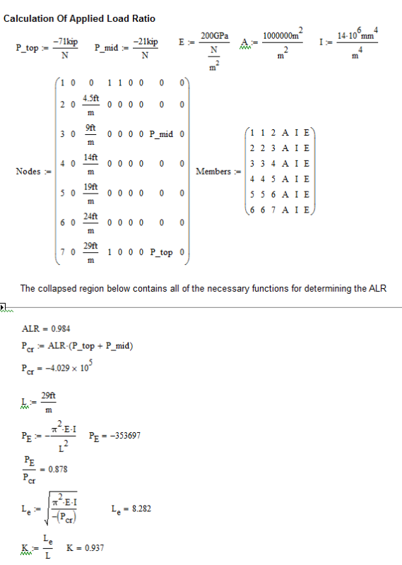 I'm designing a catwalk system that will be installed into a new building. Basically the building was previously designed and I'm trying to calculate the buckling of the column. The height of the building is 29'-0" Tall and the height of the catwalk is 9'-0" Tall. The load from the roof is 71 kips and the load from the catwalk is 21 kips. The catwalk does not provide stability or restrain as it is kinda like a tree stand of sorts and is supported solely by the column.
