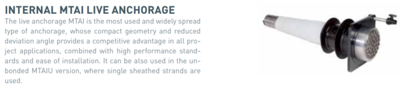 Or, if you wish to reduce wedge draw-in losses inherent with strand systems, use high-tensile PT threaded PT bar where bearing plates and compatible spherical washers and nuts are used to secure the PT force. However, PT bar will not work in conditions where the tendon has drape.