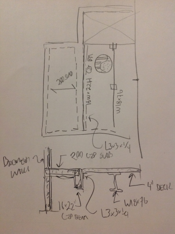 We can also evaluate spanning the wall horizontally to the return walls (although there is currently a jog in the wall). We could also potentially use tiebacks or other external bracing mechanisms if we absolutely have to.