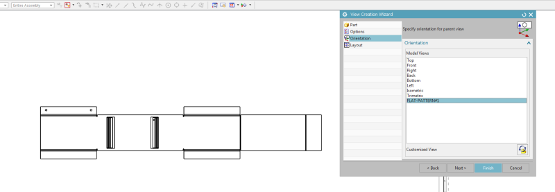 I am using NX 10. Suddenly (actually, today), sheet metal module starts to act weird. I create a sheet metal part, contained some export-to-sheet-metal features, flanges, bends, etc.; then I create a flat pattern and take an attempt to place the drawing view of that flat pattern. I create a new base view in the drafting module and choose the appropriate Model view to use (as default, it has the name like FLAT-PATTERN#1). Unexpectedly, part displayed on this view bent, I mean all the flanges and bends are displayed in their final state, not flattered. Additionally, when trying to edit settings of this view, there are no sections, related to a flat pattern, as if it was the regular view, not a flat pattern view.