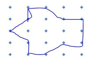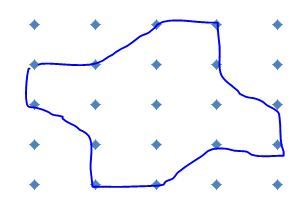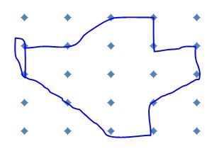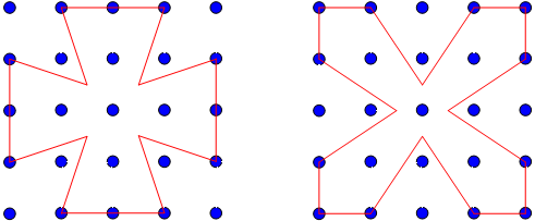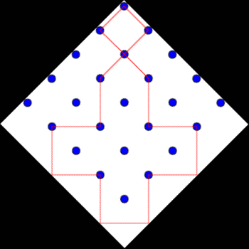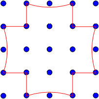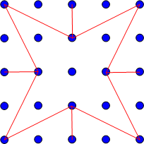 Starting with a grid of dots, 5x5 like this: