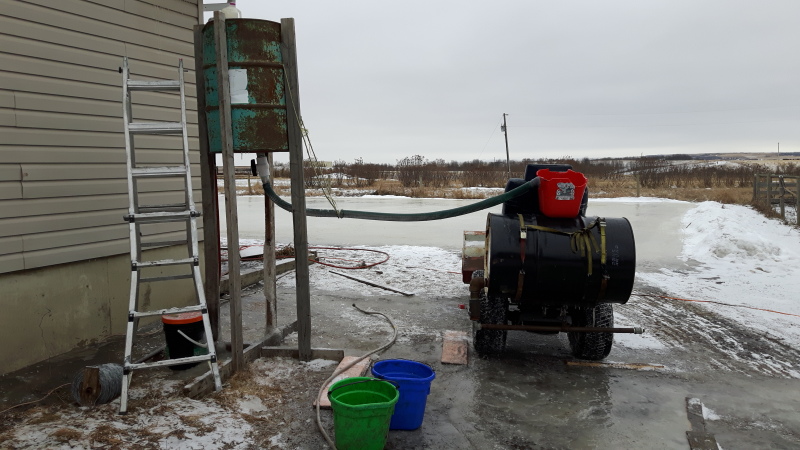 Some days the homemade float valve has not drained and is frozen so up the ladder with more hot water.