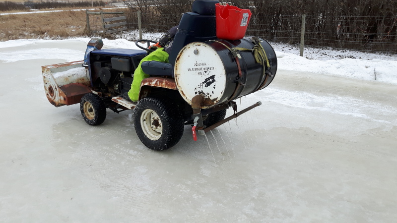 As soon as the water flow has started, I start trying to start the Zamboni.