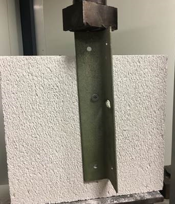 The testing rig setup was updated to using a steel angle connected to a hydraulic ram which had a screw passing through the angle and into the AAC panels. The ram would then be loaded which produced a shearforce vs deflection curve. Hence we could obtain initial shear-slip and ultimate shear capacity.