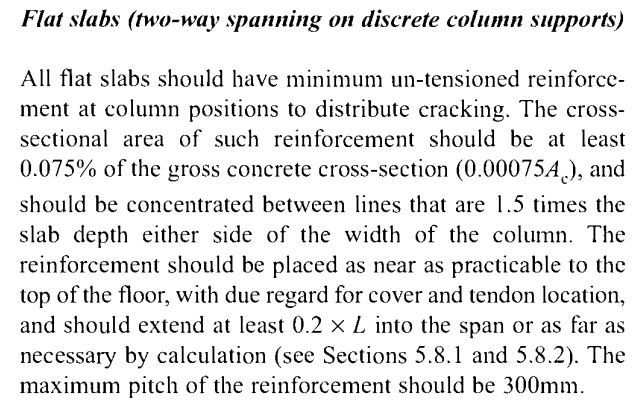 May I know, what is the minimum reinforcement for post-tensioned transfer plate? From which code/standard ?