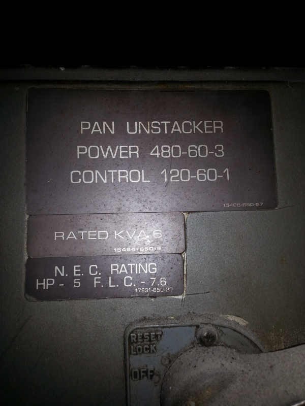 Pan Stacker/Un-stacker: B.P. machines, including much of the adjoining sections of conveyors.