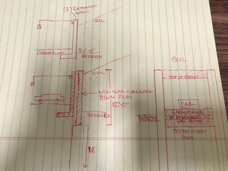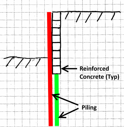 However, currently trying to pressure my boss that providing temporary shoring and building a replacement cantilevered retaining wall may make more sense.