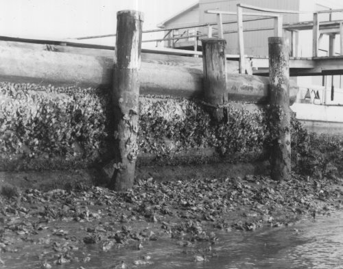 The photo below, which I took in the 1980's, is one of my father's walls. The horizontal members are salvaged 18" octagonal reinforced precast concrete bridge piling (from the 1930's). The vertical creosoted piling were very used, so have since been replaced more than once. This waterfront bulkhead, now 55 years old, is still in use.