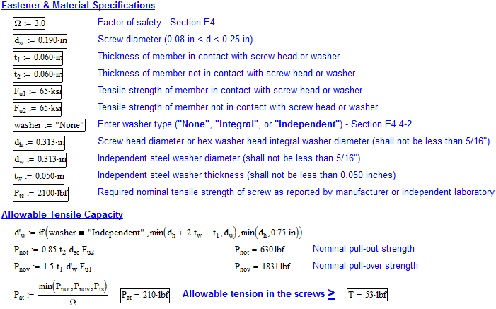 I'm also looking to find the formula for the uplift capacity of #12-14x1" self driller for the roof to purlin fastener.