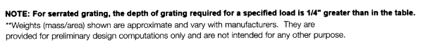 Therefore serrated: LL = 100 lb/ft2, use W-19-4 (1 1/2 x 3/16) Hot-Dip Galvanized (Approx. Weight = 11 1b/ft2)