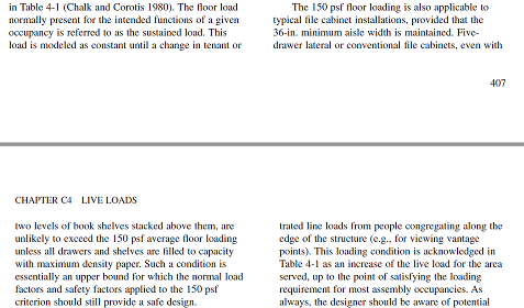 One change the owner would like to make is to add file storage to the second floor of the building. We have been told that the shelving will weigh approx. 410# per unit with two units back to back (820#). At a floor area of 6 square feet this will equate to a load of 140 psf for the shelving. My question is in regards to the isles. Assuming a 3’ wide isle and an isle load of 40 psf would equate to an average load of 78 psf (the building was designed for 80 psf).