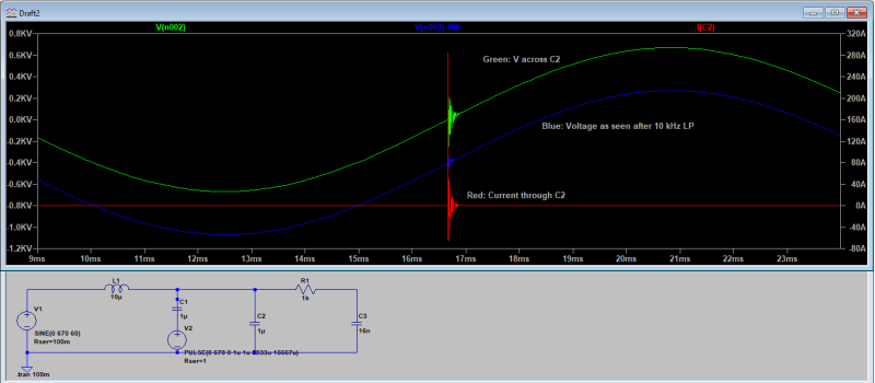 The harmonics may not have to be at a particularly high voltage to add heat to the capacitor.