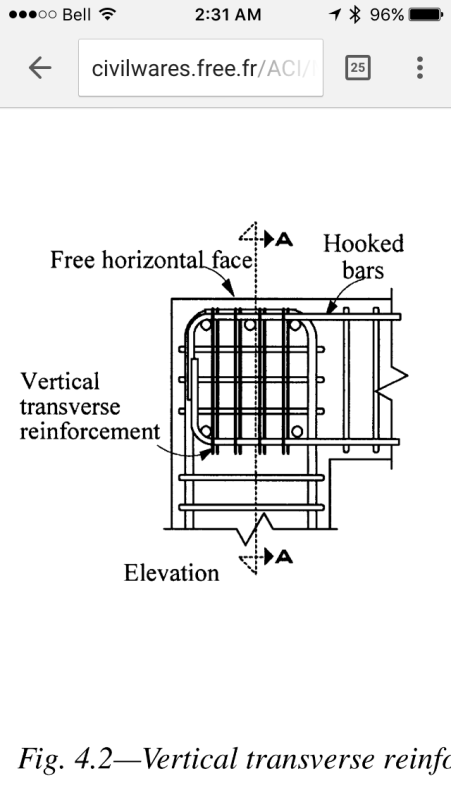 2) Follow suggested ACI detailing pretty much to the letter and execute the nominal checks that they recommend. I consider this situation to be a bit delicate in that, in several ways, the suggested ACI detailing really does not satisfy the moment transfer load path requirements in the sense that was discussed in that referenced thread on retaining wall joints. The outside bars are not continuous around the corner and there's a difference between the inside bars being "developed" and being "anchored". Since the whole thing doesn't really check out in a rigorous way, I find it difficult to know where I can take liberties and where I can't.