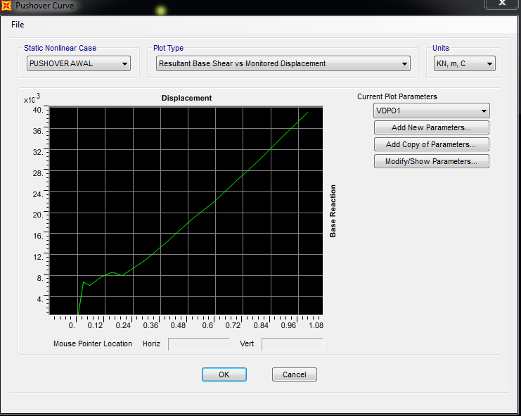 The pushover load case is defined using nonlinear P-delta with displacement control until 1 meter..