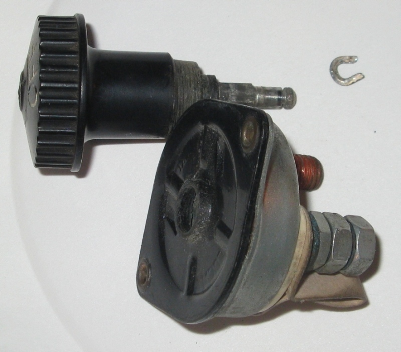 When you turned on the headlights by pulling the knob out, in order to remove the switch, you first had to disconnect the battery, reach around to the back of the switch (usually through a jungle of wires) and press a little button on the side of the switch opposite the wire terminations. Then the knob and stem would just slide right out when you pulled on the knob and held the button in.