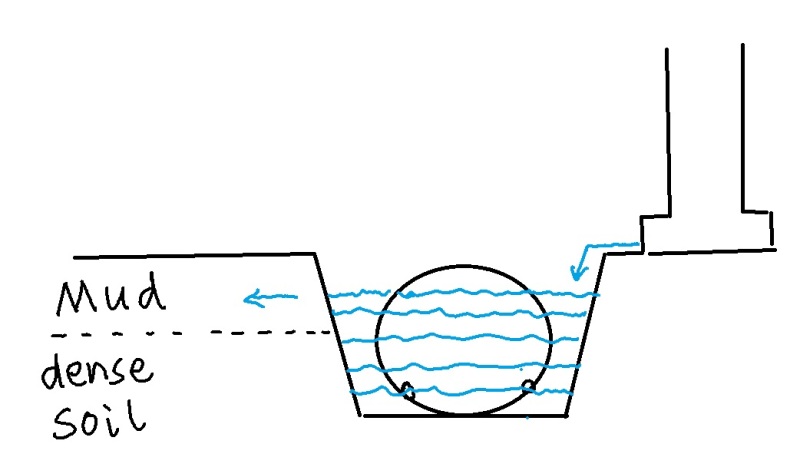 Do you think it's possible that the water actually spreads horizontally through the muddy layer as illustrated below?