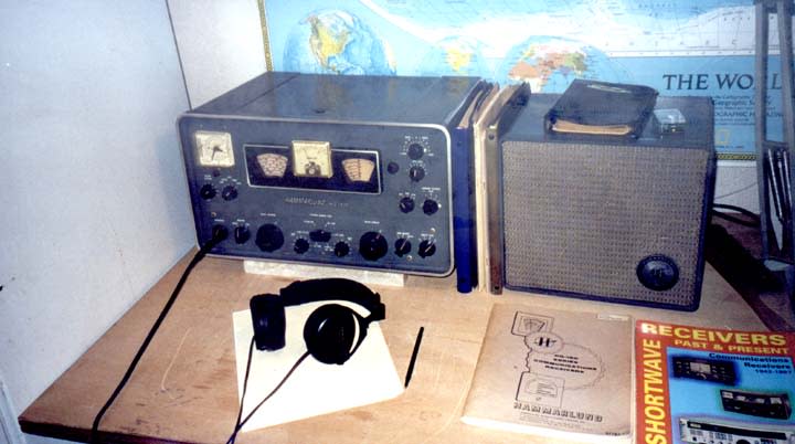 I also have a drafting table in the garage, but it's currently being used as a radio stand for another antique, a Hammarlund HQ-180AC general coverage radio receiver, vintage 1965, as seen below: