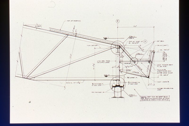 The idea here was to create a slot where the entire roof would skirt along on teflon bearing pads. The sections spanned about 21 ft. if I recall.