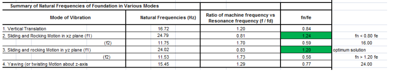 Remember: the spring constant you come out with will not be exactly that number (neither will the damping, stiffness, etc)....so keep that in mind. There are good rules of thumb for initial sizing of these foundations that help you to avoid most problems.