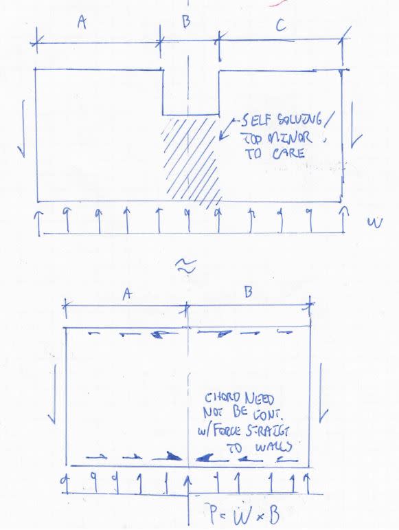 Seriously though, my thinking is that if a chord is interrupted, the conventional wisdom is that the diaphragm will fail. However, it truly CANNOT fail, because in order for the diaphragm to tear apart on the tension edge, it would have to overturn the basement walls which are parallel to the tension chord. Which will not happen.