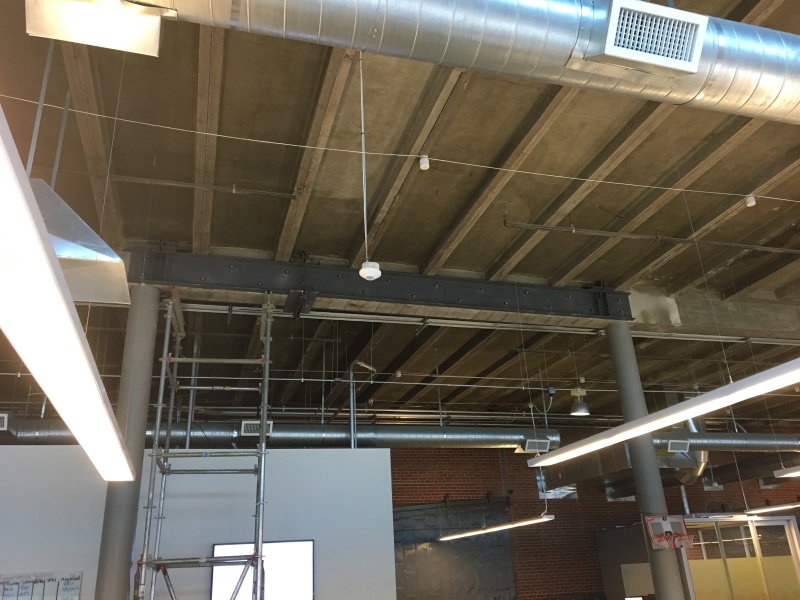 I was reading the clouded bit below as diaphragm that could be penetrated to do my nasty hanger business. Is that so? Tell me fast as I'm working up some sketches based on that. I see the actual "hanging" being from the cmu beam.